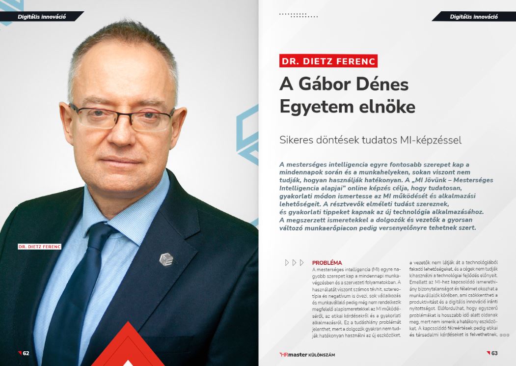 A HR Master különszámában dr. Dietz Ferenc, Egyetemünk elnöke beszélt arról, miként alakítja át a mesterséges intelligencia az oktatást, a munkaerőpiacot és az egyetemek működését.