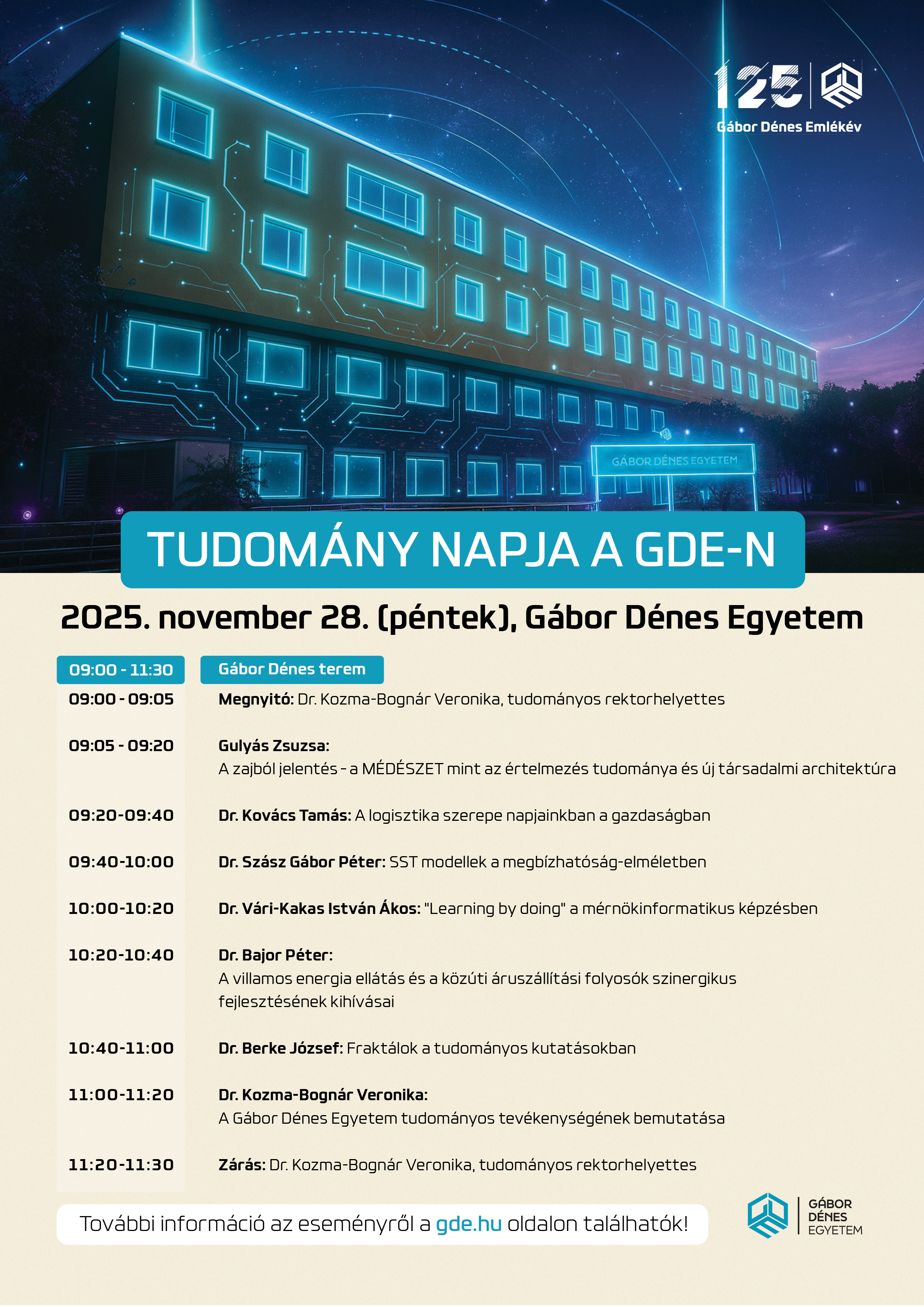 A Gábor Dénes Egyetem november 28-án rendezi meg a Tudomány Napját, ahol oktatóink bemutatják, milyen kutatási területek és tudományos kérdések formálják ma az egyetem szakmai életét.