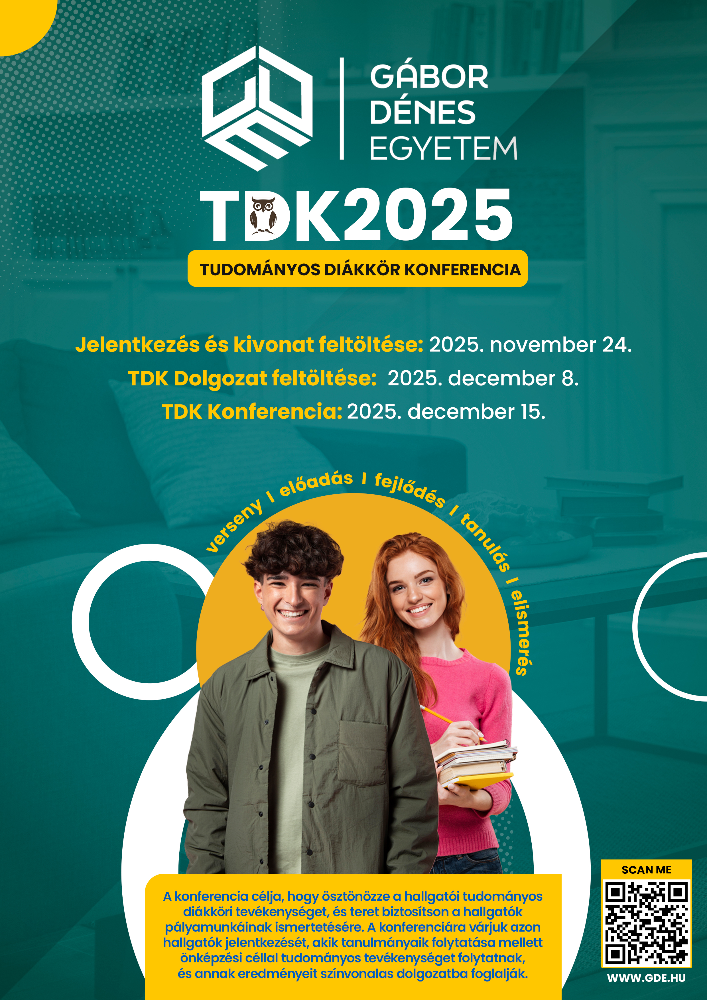 Egyetemünk idén 2025. december 15-én rendezi meg az Inzétményi Tudományos Diákköri Konferenciát, melyre várjuk még a tudományos tevékenységet végző hallgatók jelentkezését.